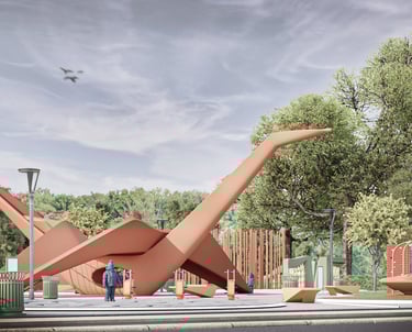 Campbell town is the official sister city of Koshigaya Japan. In commemoration of this friendship a design competition was held to create a park inspired by traditional Japanese origami while also creating innovative play opportunities for children of varying age groups. This urban development project is still under review for construction.