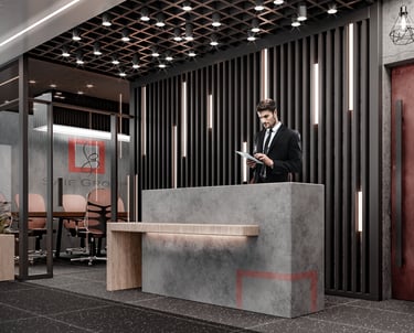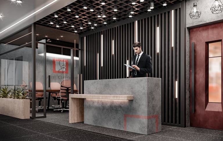 Interior design project for Saif Textiles Head Office in Islamabad. The client wanted an industrial themed interior with tactile surfaces and meaningfully flexible spaces.