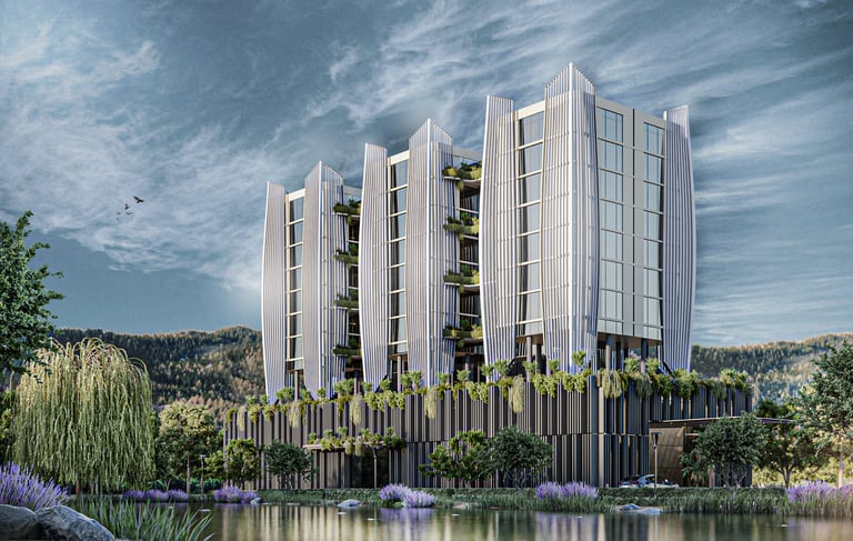 Mixed use complex located in front of the Margalla Hills in Islamabad. The lower floors serve as a club and commercial hub and the three towers house high end dwelling units. Done in partnership with Redefine Sustainability