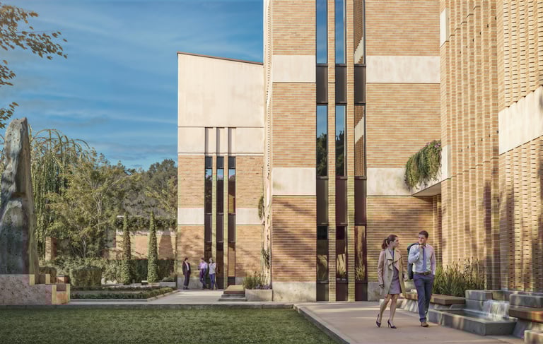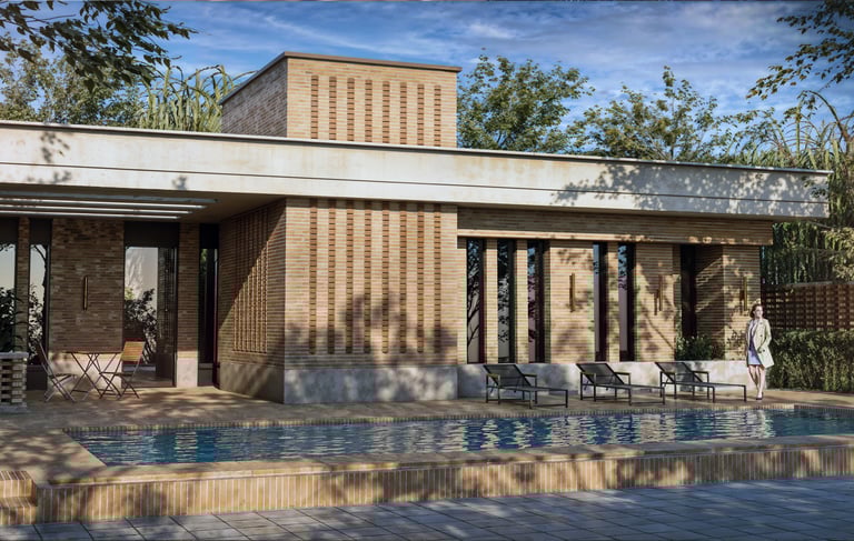 The winning proposal for the embassy of Norway in Islamabad. The interplay of brick and concrete with a simple monolithic form serves as a local anchoring of modern Norwegian design sensibilities. Project in collaboration with ZAES